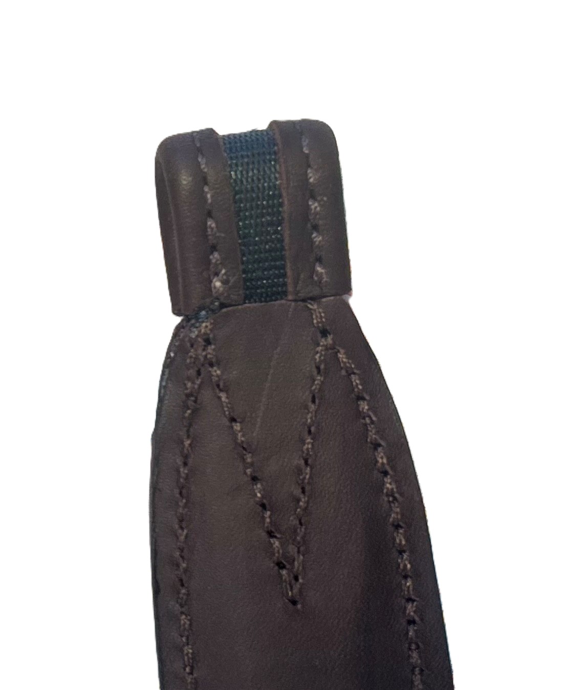 Our wide stirrup leathers provide improved pressure distribution thanks to their larger contact surface. In all gaits, and especially when jumping, they offer the rider enhanced balance and help prevent the leg from lifting or moving away from the horse’s side. The more stable leg position also allows for more precise and sensitive aids, improving communication with the horse.